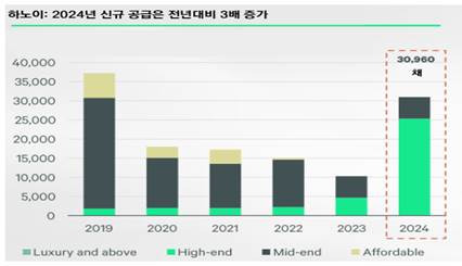 <2019~2024년 하노이 아파트 신규 공급 수량 동향>